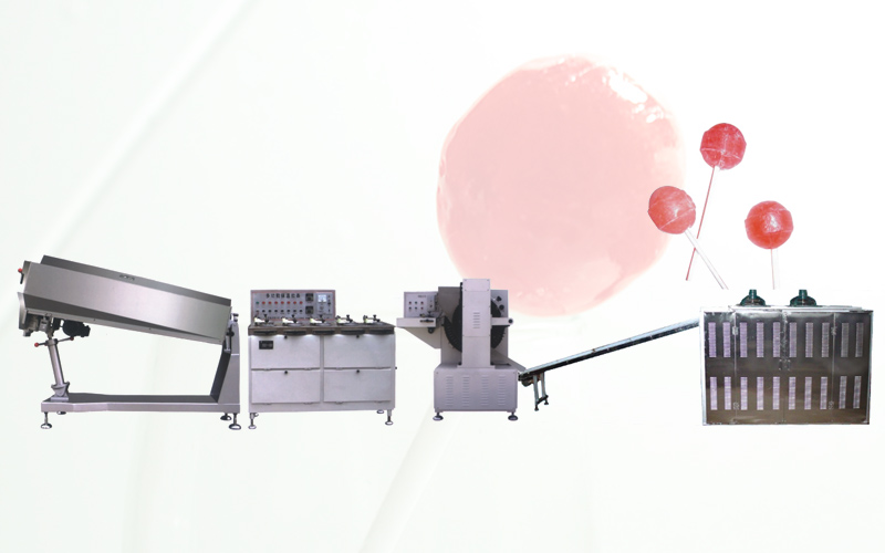 This production line is professional for production ball lollipop with high capacity. It is composed of the batch roller, the rope sizer, the ball lollipop forming machine and the cooling screen.